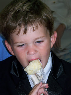 The wedding was a success. Possum and Squirrel made it down the aisle and although Possum didn't stay at the front and I had to hold Squirrel they did great. Leah was a pretty bride and the rest of us looked pretty good too. I told Squirrel that we could have cake if she was good during the picture taking process. As soon as she was finished she said, "Birthday cake please." This has been a long and exciting day for everyone. Congratulations Jim and Leah and Happy Birthday Possum!